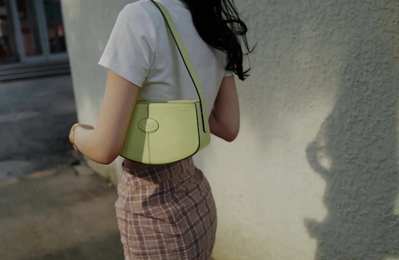而且绿色这款腋下包,少女感很强!